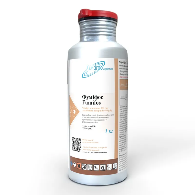 Призначення знищення шкідників запасів у різних стадіях розвиткуСклад фосфід алюмінію 560 г/кгФорма таблеткиОб'єкт, що обробляється зерно продовольче, насіннєве, фуражне, насипом до 2,5 м та затарене в мішки під брезентом або поліетиленовою плівкою; трюми суден; незавантажені складські приміщенняОб'єкт шкідники запасів