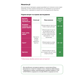 Можливе використання в бакових сумішах. Вимоги до рН робочого розчину від 6 до 8.