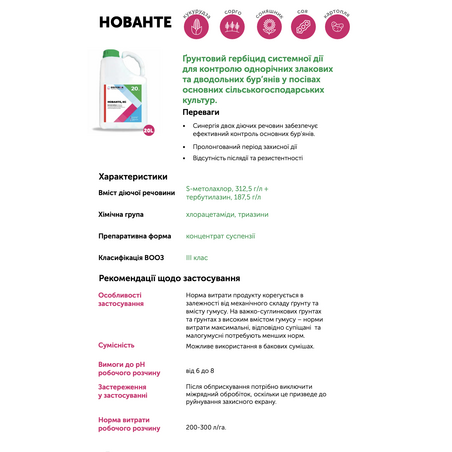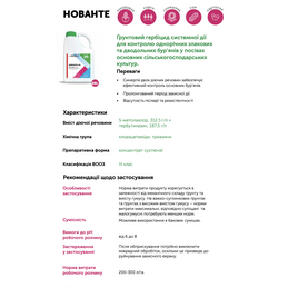 Нованте – ґрунтовий гербіцид системної дії для контролю однорічних злакових та дводольних бур’янів у посівах основних сільськогосподарських культур.