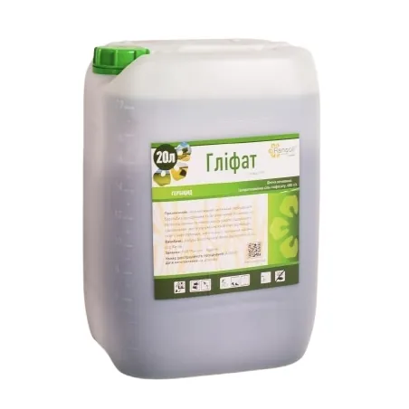 Діюча речовина: ізопропіламінна сіль гліфосату 480 г/л Формуляція: РК (розчинний концентрат) Призначення: однорічні злакові бур'яни, однорічні дводольні бур'яни, багаторічні злакові бур'яни, багаторічні дводольні бур'яни Тара: пластикова каністра 20 л Культура: зернові, картопля, плодові та виноградники, люцерна, льон-довгунец, овочеві, квіти