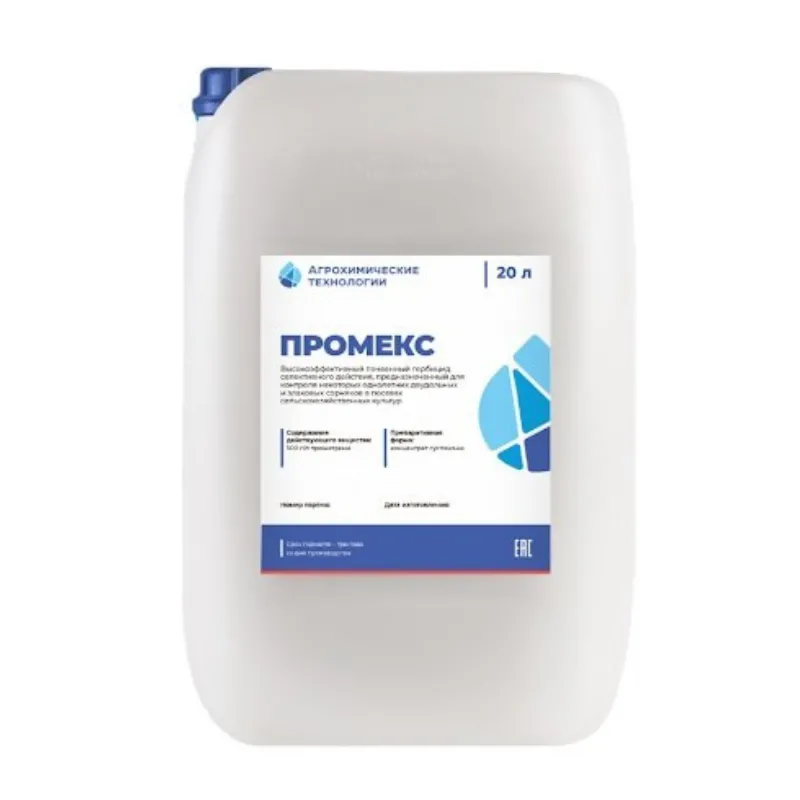 Промекс – гербіцид селективної дії. Препарат поглинається як паростками, так і корінням бур'янів, які проростають та вже зійшли. Прометрин блокує процес фотосинтезу у чутливих рослин, внаслідок чого бур'яни гинуть.