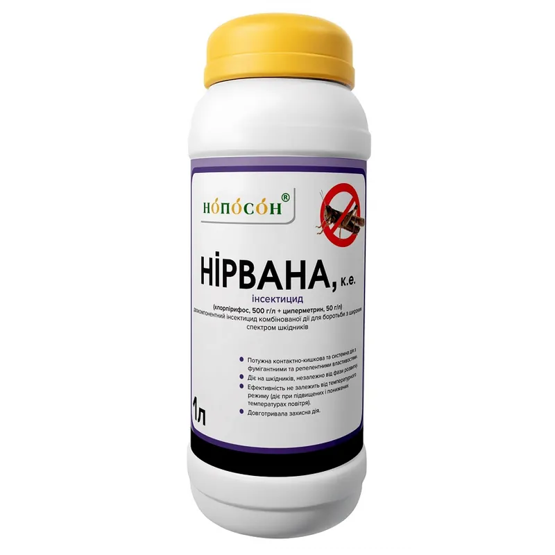 Активний інгредієнт: хлорпірифос, 500 г/л + циперметрин, 50 г/л Препаративна форма: концентрат емульсії Тара: пляшка 1л, каністра 5л