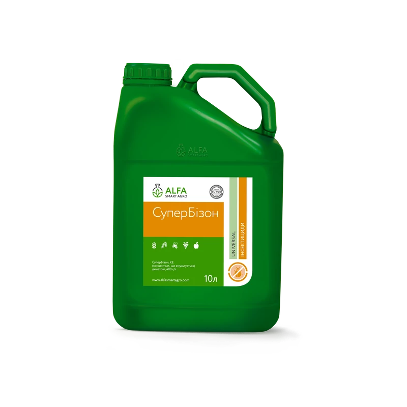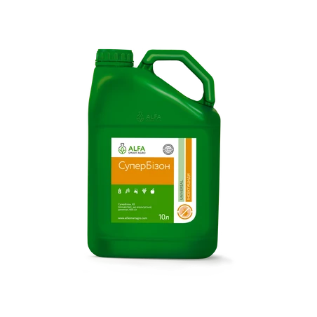 Має швидкий нокаутуючий ефект з подовженою захисною дією проти більше ніж 30 видів небезпечних фітофагів. СуперБізон сумісний з більшістю інсектицидів, фунгіцидів, протруйників фунгіцидної дії та мінеральних добрив, за винятком лужних та сірковмісних. Стійкість до високих температур і зниженої вологості повітря обумовлюють широкий інтервал застосування препарату.