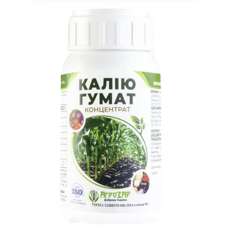Склад: Калію гумат - 100-110г/л, Калій (К2О)- 10-12г/л Азот (N) - 20-30г/л