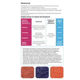 Діюча речовина: фіпроніл 50 г/л + імідаклоприд 480 г/л Формуляція: ТН (концентрат, який тече, для обробки насіння) Призначення: від комплексу наземних і ґрунтових шкідників сходів Тара: пластикова каністра 10 л Культура: пшениця, ячмінь, соя, кукурудза, соняшник