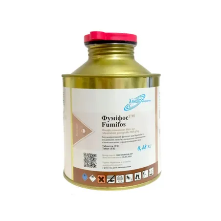 Призначення знищення шкідників запасів у різних стадіях розвиткуСклад фосфід алюмінію 560 г/кгФорма таблеткиОб'єкт, що обробляється зерно продовольче, насіннєве, фуражне, насипом до 2,5 м та затарене в мішки під брезентом або поліетиленовою плівкою; трюми суден; незавантажені складські приміщенняОб'єкт шкідники запасів