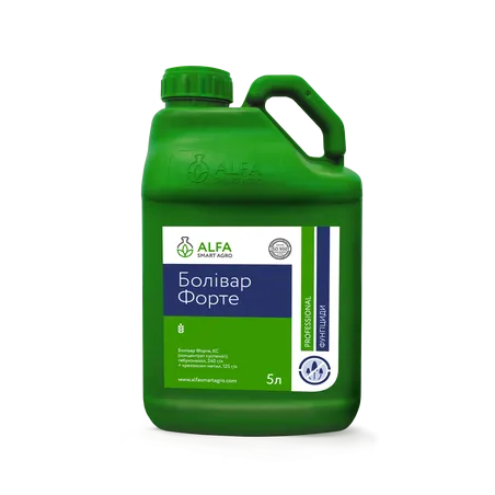 Крезоксим-метил образует на восковым налетом частей растения стабильные запасы, которые очень устойчивы к смыванию осадками. Непрерывное высвобождение и перераспределение действующего вещества в процессе диффузии происходит в течение нескольких дней. В результате этого крезоксим-метил равномерно распределяется как по поверхности растения, так и трансламинарное внутри листа, что обеспечивает удлиненный защиту растения. Тебуконазол проникает в растение через ассимилирующие части и равномерно распространяется ксилемой в течение 1-2 часов после применения, обеспечивает быструю локализацию инфекции и длительную защиту посевов. В результате применения Боливар Форте проявляется выраженный эффект здоровой клетки (health-эффект), проявляется в приостановлены старения клетки за счет подавления биосинтеза этилена и увеличение эндогенных цитокининов, пролонгации фотосинтеза и дальнейшем повышении качественных и количественных показателей урожайности.