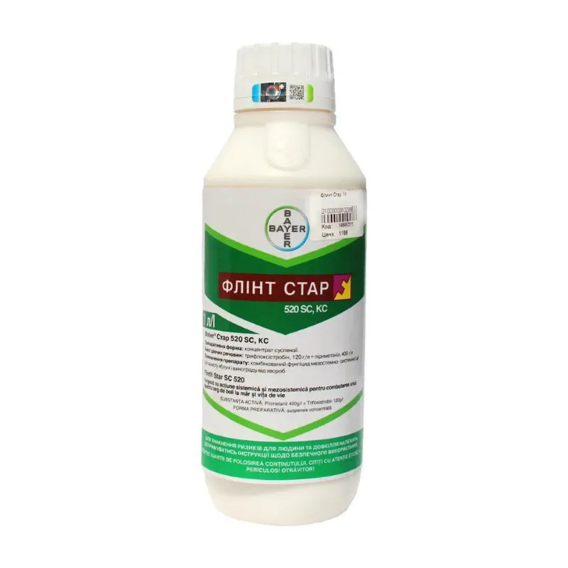Флинт ® Стар 520 SC, КС - препарат, содержащий действующее вещество трифлоксистробин из класса стробилуринив с мезостемним механизмом действия и пириметанил из класса анилопиримидинив с системным механизмом действия.