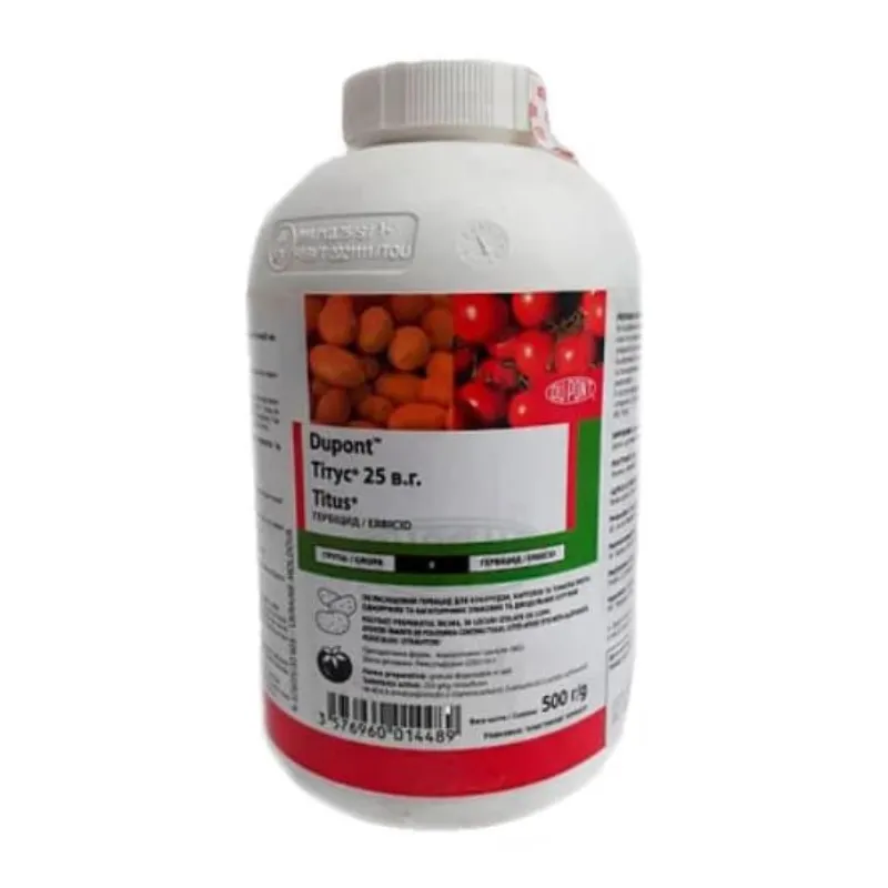 Титус - системный гербицид для пислясходового контроля однолетних и многолетних злаковых и широкого спектра двудольных сорняков в посевах картофеля и томатов.