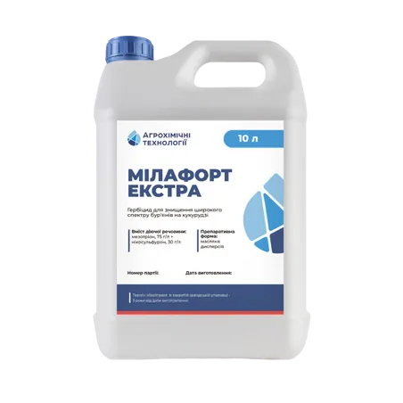 Діюча речовина: 480 г/л мезотріон Формуляція: концентрат суспензії Призначення: однорічні й окремі багаторічні дводольні бур’яни, однорічні дводольні бур'яни Тара: 5 л Культура: кукурудза, мак