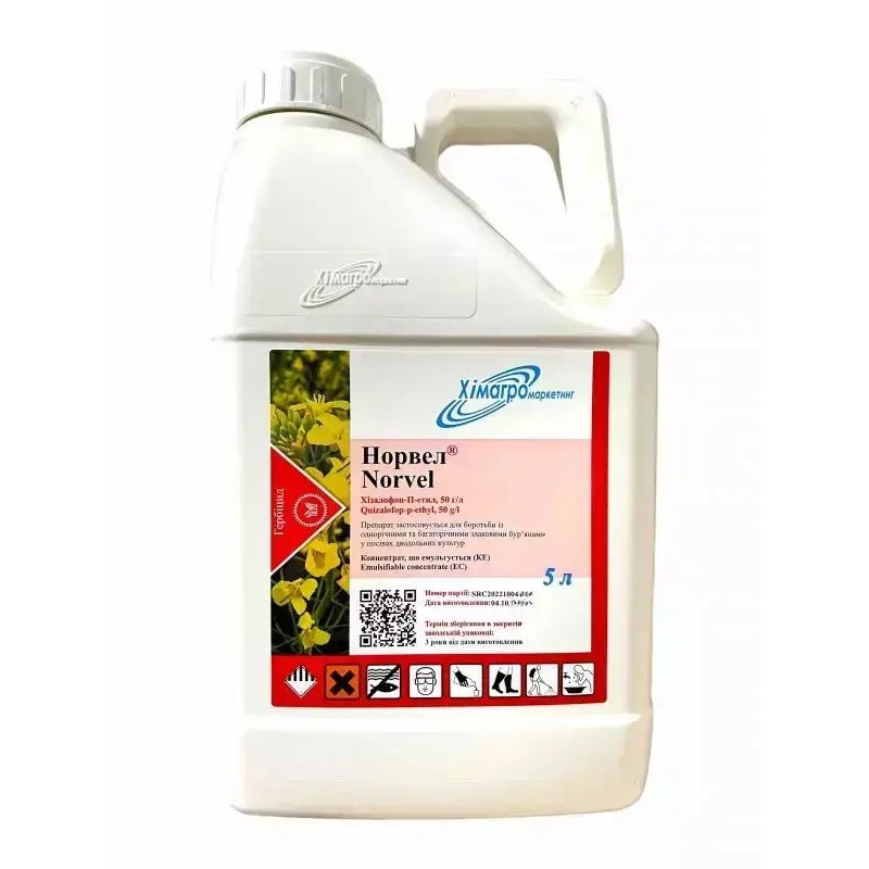 Діюча речовина: хізалофоп-п-етил, 50 г/л Формуляція: концентрат, що емульгується Призначення: однорічні злакові бур’яни, багаторічні злакові бур'яни Тара: каністра 10 л Культура: соя, ріпак, соняшник, буряки, морква, капуста, цибуля, картопля, томати, огірки, льон-довгунец, конопліПрепарат з аналогічним складом: Норвел (Хімагромаркетинг)
