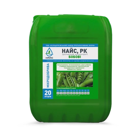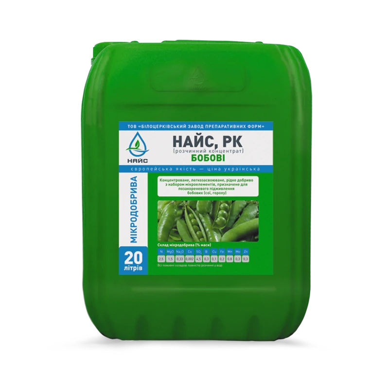 Состав микроэлементов полностью отвечает биологическим потребностям бобовых. Основные элементы: бор, кобальт и молибден. Бор нужен бобовым хотя и меньше, чем для свеклы, но он отвечает за количество эффективных соцветий. Физиологическая роль молибдена связана с фиксацией атмосферного азота, редукцией нитратного азота, участвует в окислительно-восстановительных процессах, углеводном обмене, в синтезе хлорофилла и витаминов. Все компоненты НАЙС Бобовые усиливают действия друг друга, обеспечивая сбалансированное питание, стимулируют рост и развитие.