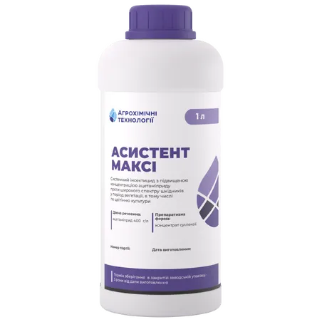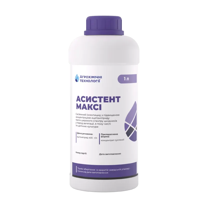 Для улучшения покрытия растений и вредоносных объектов следует вместе с Ассистент Макси применять прилипателем в концентрации 0,05-0,1% рабочего раствора.