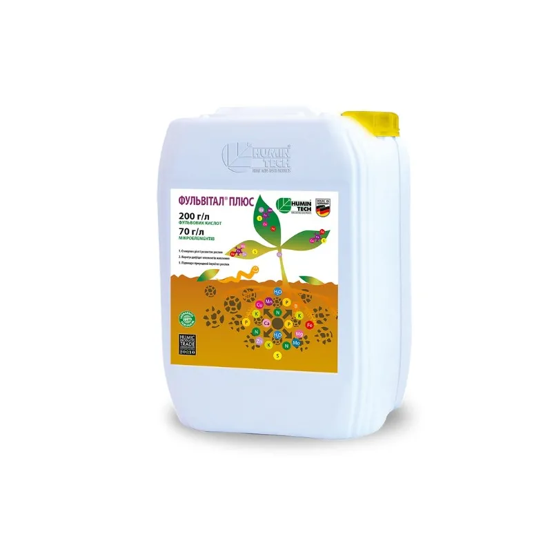 Действующее вещество: фульвовые кислоты 200 г / л, железо (Fe) 13,5 г / л, марганец (Mn) 6,5 г / л, магний (Mg) 21 г / л, цинк (Zn) 9 г / л, медь (Cu) 5 г / л, сера (S) 15 г / л, цитокинины, ауксины, другие БАВ, рН 3-4, плотность 1,08 кг / л водная суспензия повышает коэффициент усвоения питательных веществ 10 л зерновые, технические, овощные,...